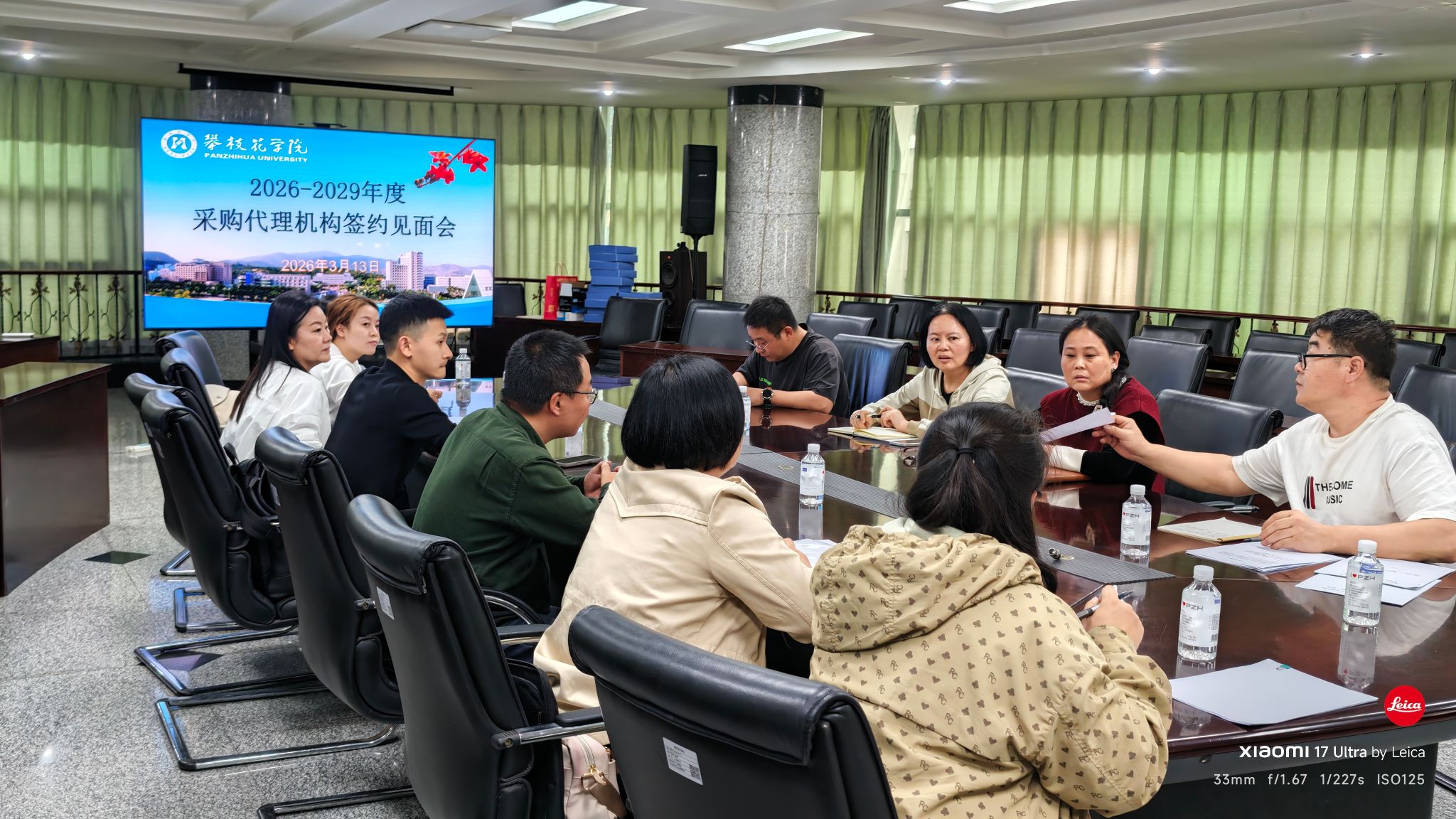 为进一步规范招投标管理工作,提升代理机构服务水平与履职能力,保障学校招投标工作合法合规、高效有序开展,20263131530分,攀枝花学院资产管理处组织召开采购标代理机构签约见面会。资产管理处处长湛红艳、招标中心主任吴琳珊、招标科科长及四川中志招标代理有限公司、成都一问工程技术咨询有限公司、成都千一工程项目咨询有限公司三家代理机构代表参会。
